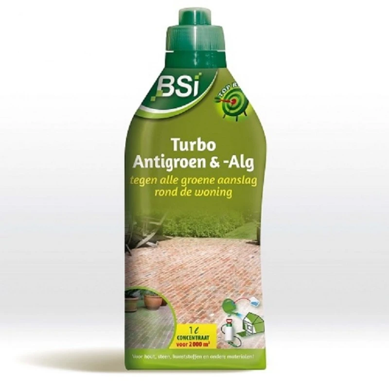 Turbo Antigroen en alg 1000 ml voor 2000m². Ter verwijdering en voorkoming van groene aanslag op diverse plekken zoals: