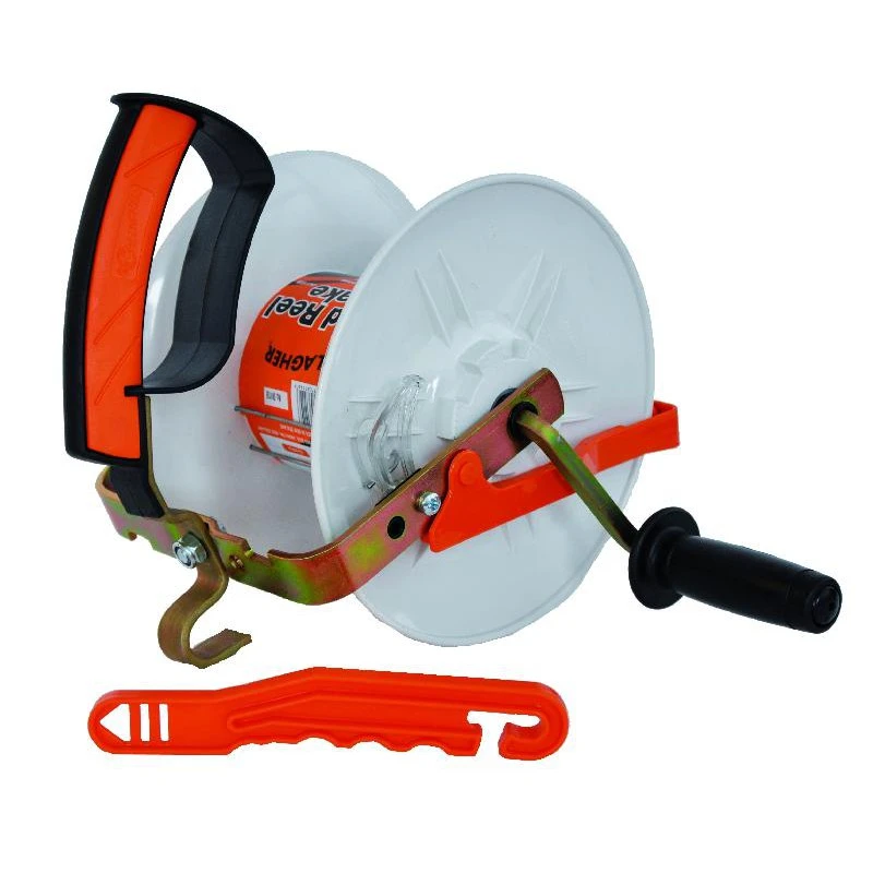 Haspel met 3:1 versnellingsmechanisme, anti-slip inrichting en blokkeringspal. Voorzien van geïsoleerde robuuste handgreep met knokkelbescherming. Geschikt voor maximaal 500 meter Vidoflex, 200 meter cord of 300 meter lint. Kan worden bevestigd aan de haspelhoekpalen (art.nr. 022014/022236). Wordt geleverd met ergonomische poortgreep (Insul-grip).