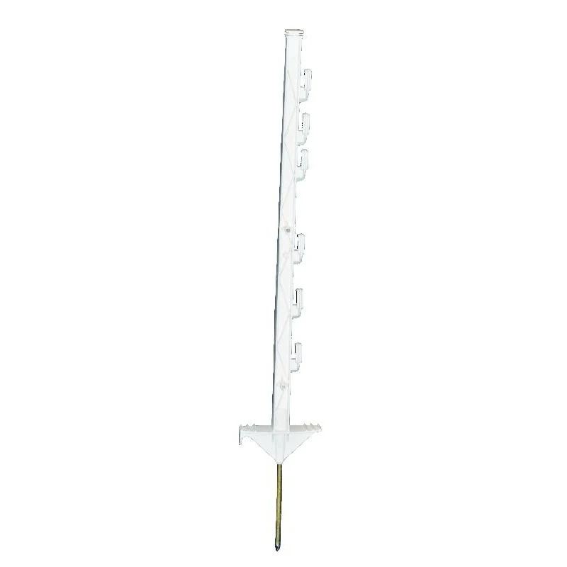 Zeer stevige en duurzame kunststof paal met 6 genummerde draadhouders en extra versterkte voet. Geschikt voor cord, kunststofdraad en lint tot 20 mm. De maximale afrasteringshoogte is 0,50 meter.