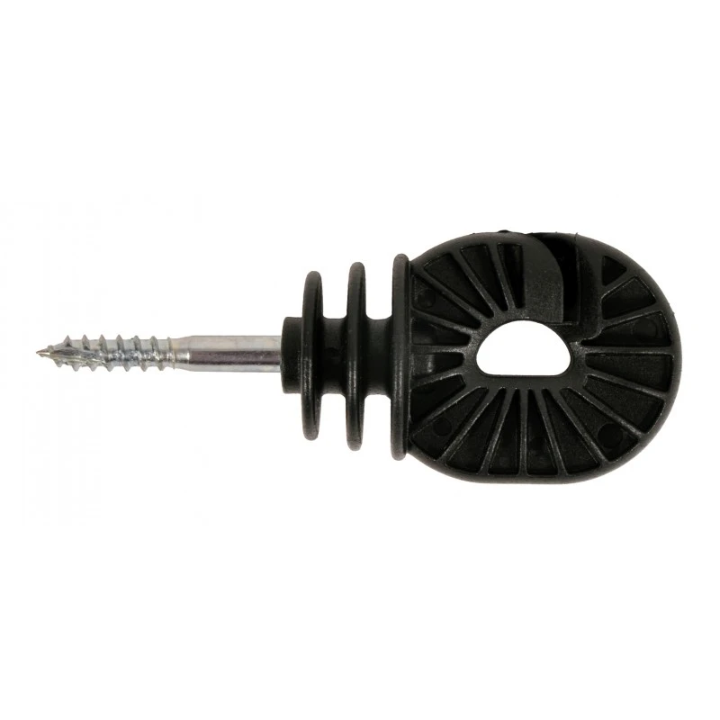 Sterke en zeer solide schroef-ringisolator voor het toevoegen van draad of 12,5mm lint op houten afrasteringspalen. De schroefisolator heeft geen ijzeren kern, waardoor kortsluiting onmogelijk is. De garantie op deze schroefisolator is 2 jaar