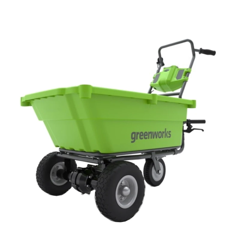 Met de Greenworks G-Max 40 volt accukruiwagen type G40GC heeft u een compacte, wendbare en krachtige accukruiwagen. Met een breedte van 68cm kan de kruiwagen makkelijk door elke poort. Het maximale laadgewicht is 100Kg. Het grote voordeel van werken met een accukruiwagen is uiteraard geen verlengsnoeren en geen brandstof.Dit laatste betekent geen uitlaatgassen en dus ook nog eens milieuvriendelijk maaien.