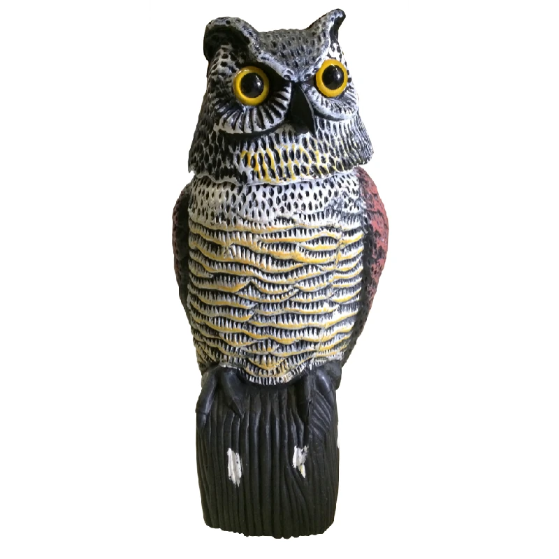 Kunststof Uil om vogels op afstand te houden. Heeft een hoofd dat draait in de wind. Ook leuk als decoratie in uw siertuin.